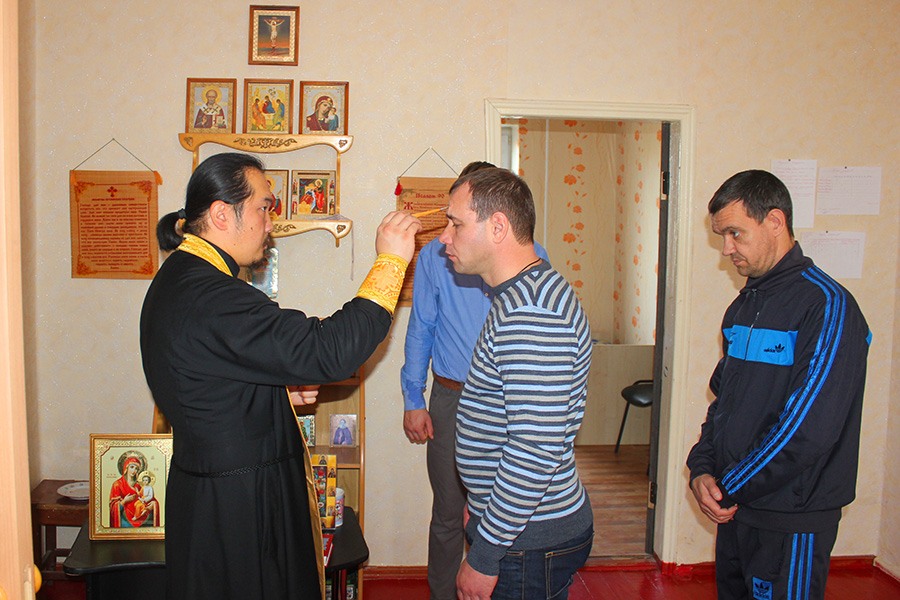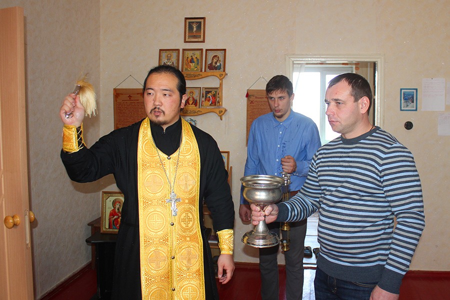 Чин освящения совершил иерей Сергий Хван, руководитель епархиального координационного центра помощи наркозависимым. После освящения отец Сергий провел душеполезную беседу с воспитанниками за чаепитием.